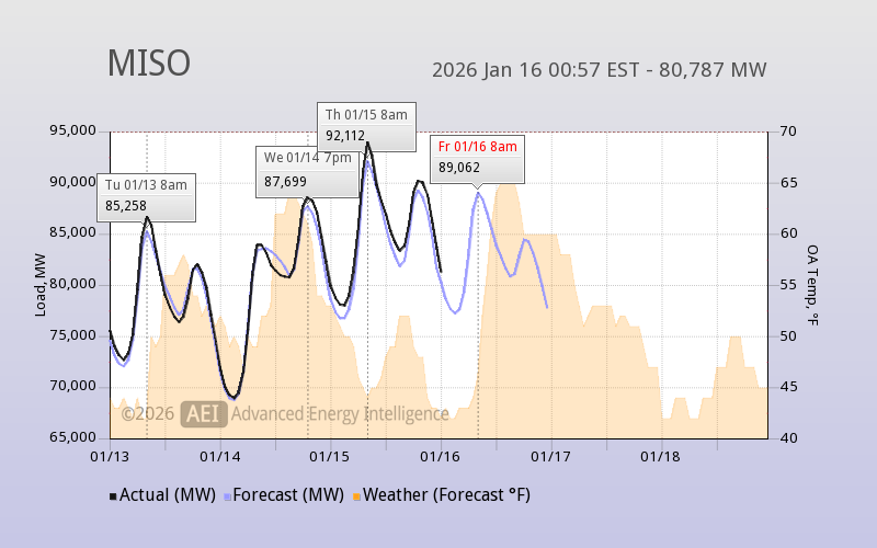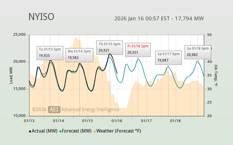 Sign Up for ISO email and SMS alerts to recieve timely notices of ISO demand that could have an impact on your facility's ICAP tag and FY18 demand charge pricing if your facility is on a Time Of Use ("TOU") electric utility meter. Consult your electric utility bill and any commodity agreements you may have for details. AEI now provides coverage for 5 of the 7 major grid operators in the U.S. and will soon be adding ERCOT and SWPP.